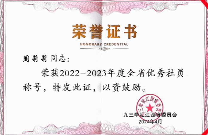 米乐官网教师周莉莉受到九三学社江西省委会表彰