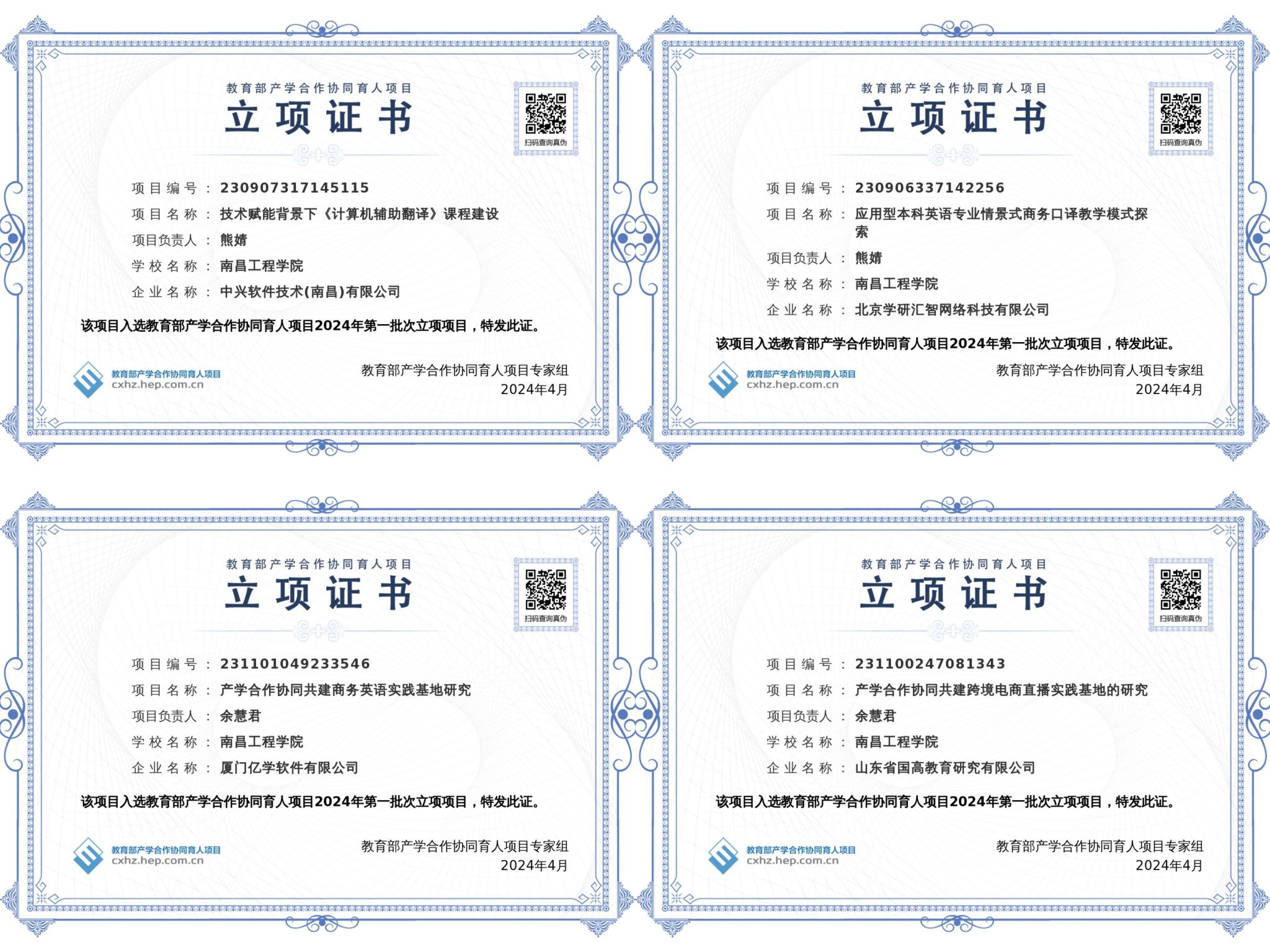 4月17日,《教育部高等教育司关于公布2024年第一批产学合作协同育人项目立项名单的通知》发布,米乐mile官方网站共有4个项目立项。