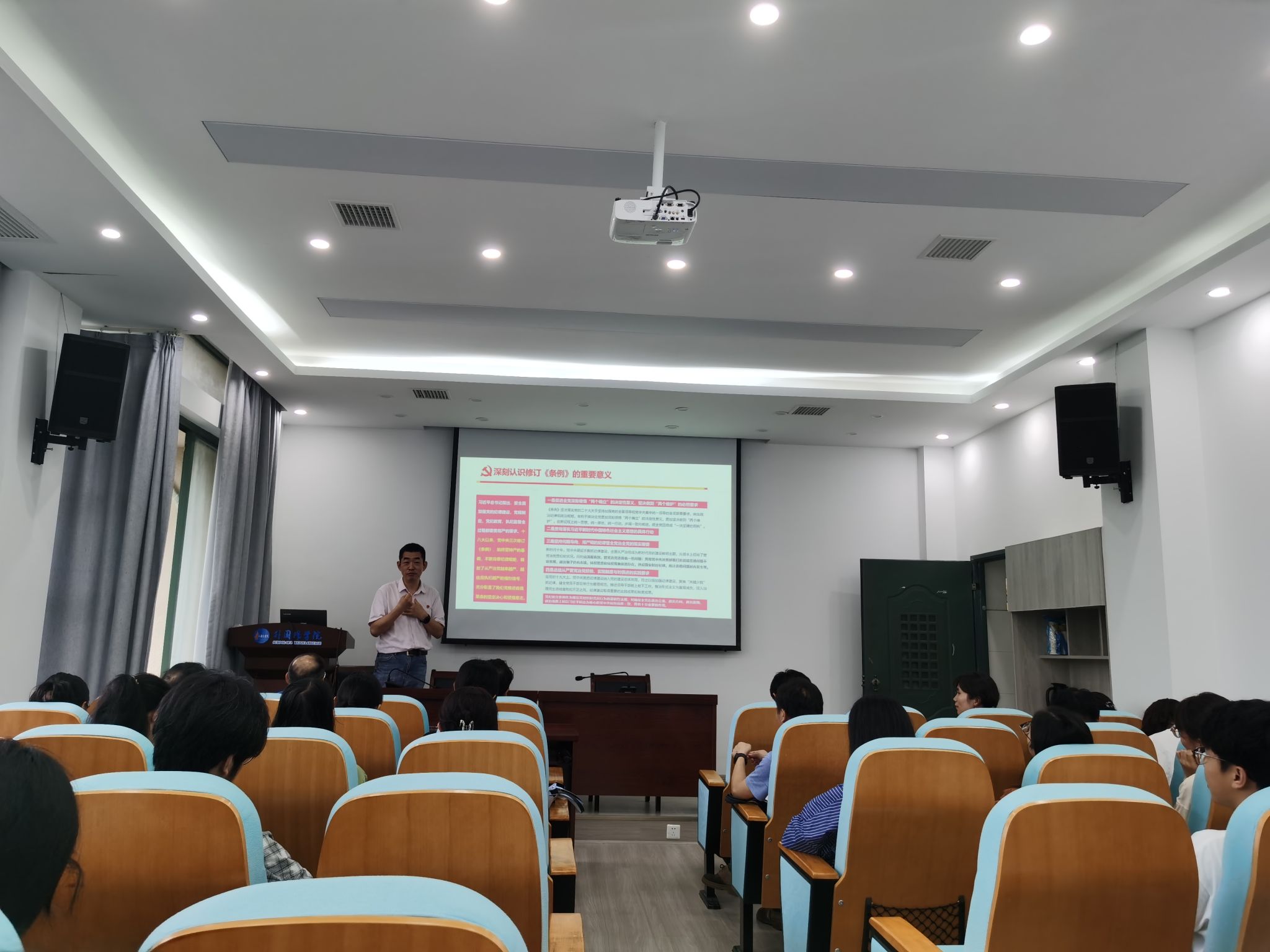 6月18日下午,副校长李培生为研究生院、米乐mile官方网站、国际教育学院师生党员讲授党纪学习教育专题党课。