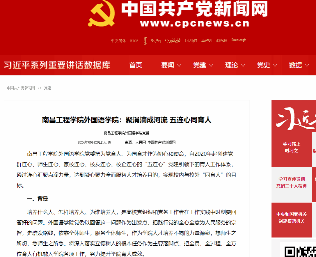 近期,中国共产党新闻网刊发了米乐mile官方网站党委“问渠”党建品牌的经验做法文章,题目为:“南昌工程学院米乐mile官方网站:聚涓滴成河流 五连心同育人” 。