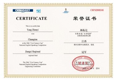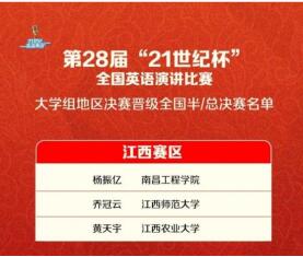 米乐官网学子获得第28届“21世纪杯”全国英语演讲比赛 江西赛区冠军