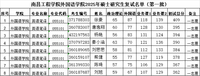 南昌工程学院米乐mile官方网站2025年硕士研究生复试名单(第一批)