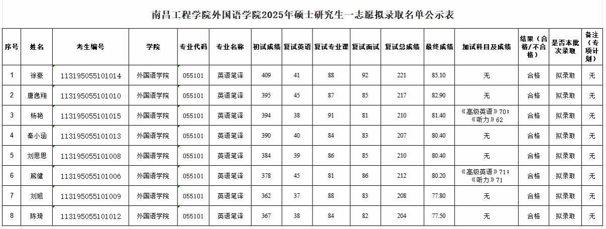 南昌工程学院米乐mile官方网站2025年硕士研究生招生考试一志愿拟录取名单公示