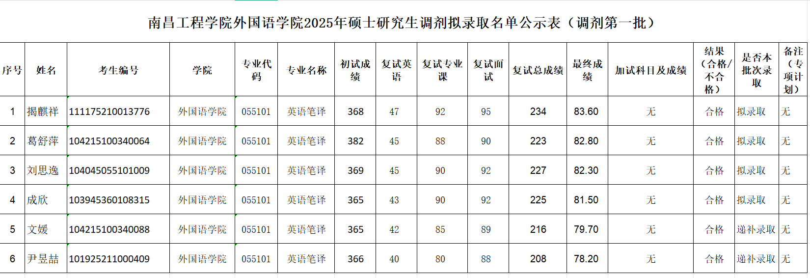 南昌工程学院2025年硕士研究生调剂复试名单公示(调剂第一批)