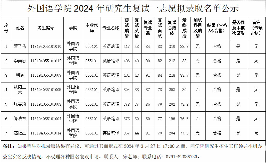 米乐mile官方网站2024年研究生复试一志愿拟录取名单公示