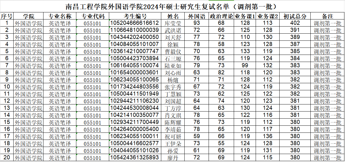 南昌工程学院米乐mile官方网站2024年硕士研究生复试名单(调剂第一批)