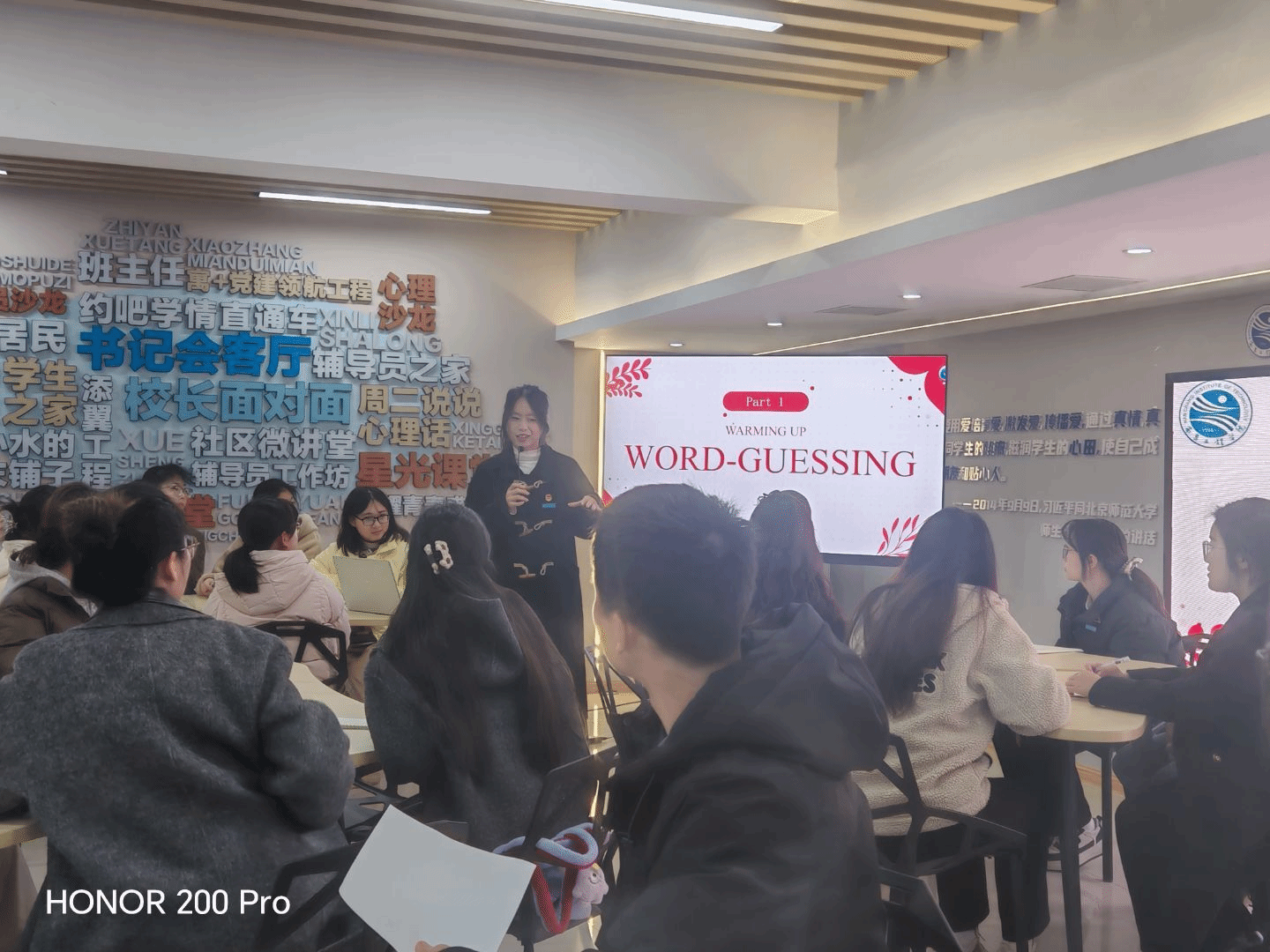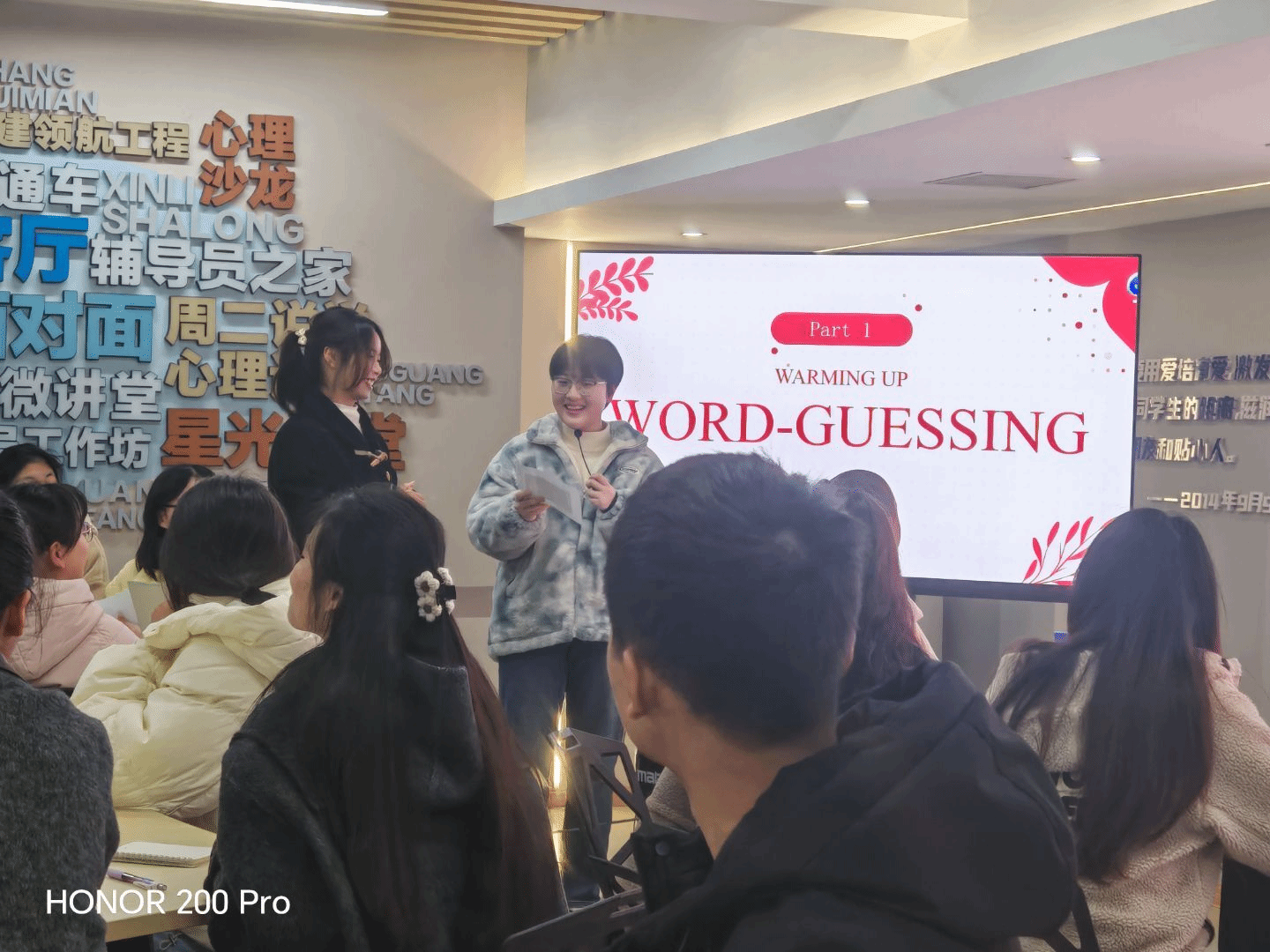 活动以“比划猜词”热身开场,学生通过英语描述《哪吒2》相关词汇迅速破冰。随后分组讨论影片角色、情节转折及文化元素,在英语交流中剖析影片的创新表达。第三环节“卧底游戏”巧妙结合剧情关键词,学生通过英语推理与互动,在趣味中提升语言应用能力。最后,参与者分享对中国文化创新传播的见解,并领取活动纪念品。