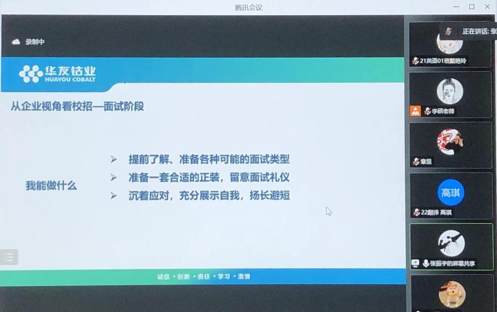 为增强同学们的就业意识,进一步了解当前就业形势,2022年8月8日,米乐mile官方网站邀请华友钴业海外人力资源部副部长张振宇开展“人力资源聊生涯”就业指导讲座。本次讲座由米乐mile官方网站辅导员章昱主持。