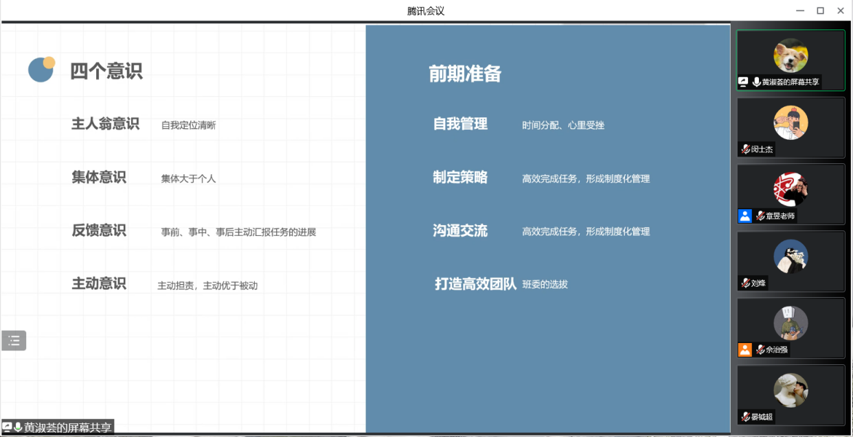 会上,米乐mile官方网站学工助理闵士杰结合实际案例就开学准备、新生报到、班主任建设、日常管理等新生工作内容进行说明,并对班主任助理前期工作进行总结。米乐mile官方网站学工助理黄淑荟从主人翁意识、集体意识、反馈意识和主动意识等四个方面分享了与新生沟通交流方法。最后,各位班主任助理对未来可能遇到的问题进行探讨,并提出相应可实施的解决方法。