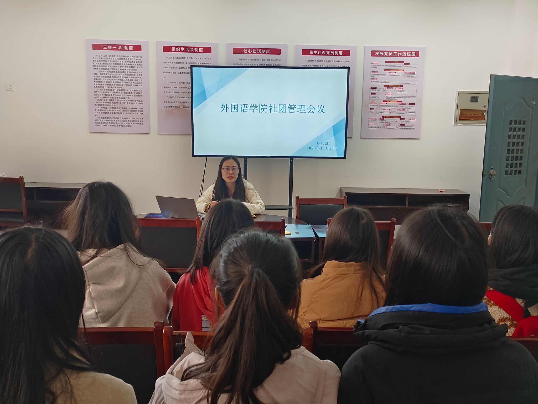 会上,指导老师详细讲解了南昌工程学院社团管理规章制度,指出社团工作中存在的问题,并就社团发展前景给予建议。最后,与会成员就社团近期工作进行探讨。