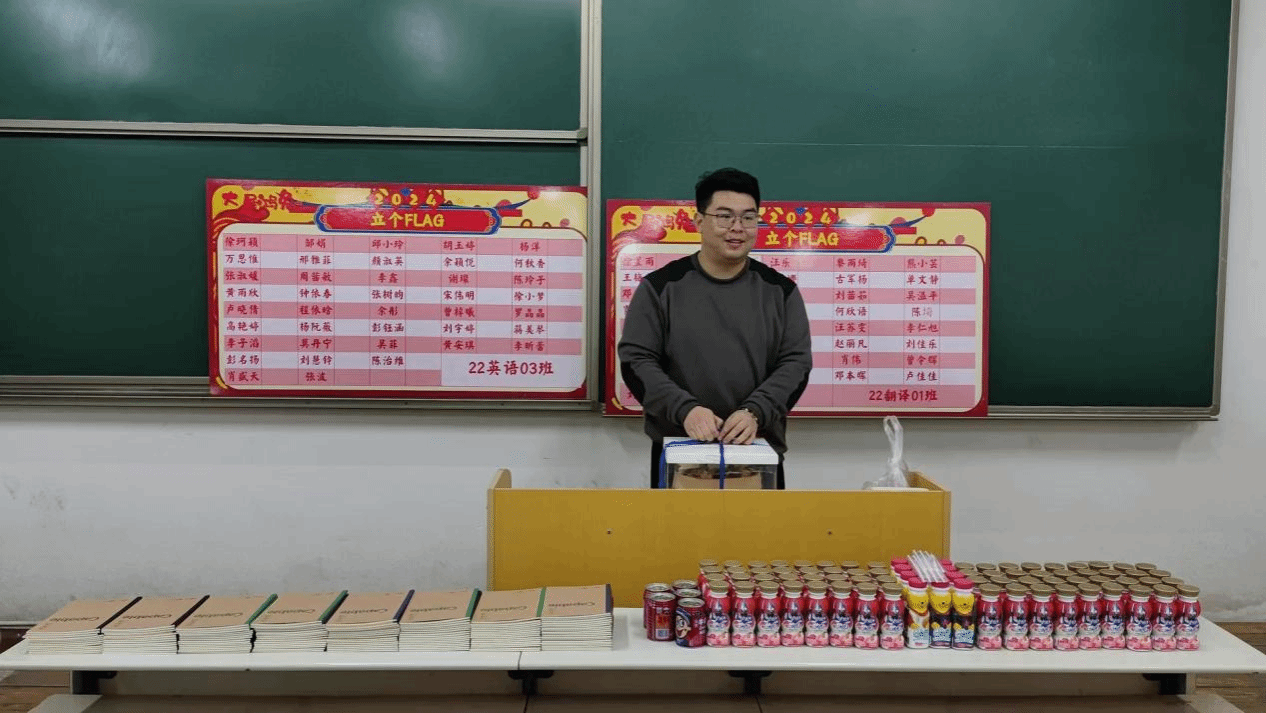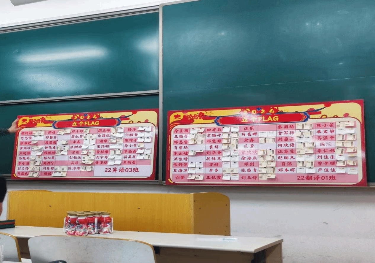 12月28日,米乐mile官方网站22英语03班和22翻译01班开展了“新年立下新flag”活动,在新的一年辞旧迎新,立下目标,同学们在班主任章昱的引导下总结本学期的收获与不足,并对新学期立下明确的目标、切实的规划。