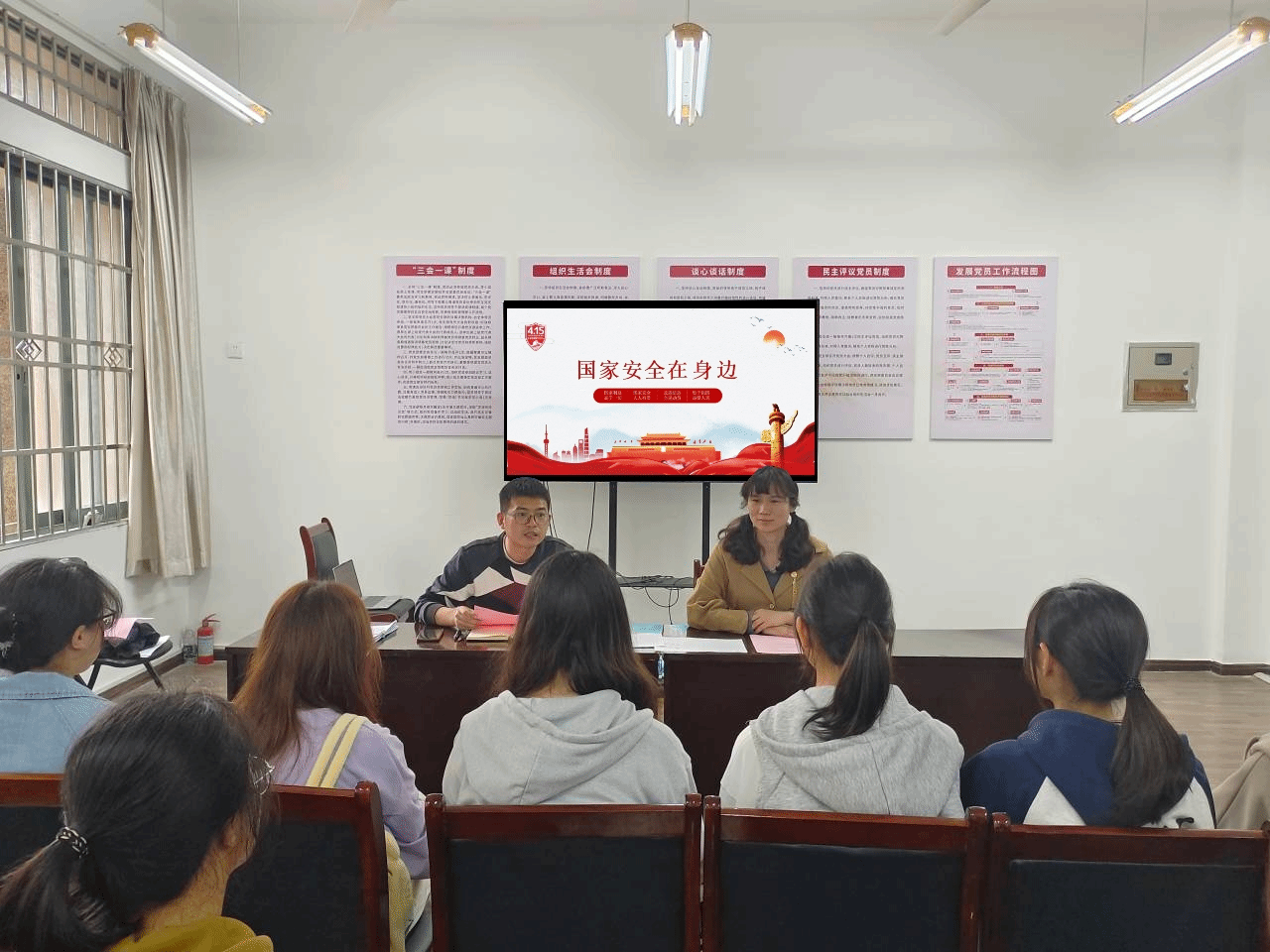2023年11月1日,米乐mile官方网站在崇德楼A103教室举办了国家安全宣传教育活动,党委副书记李硕、分团委书记兼学工办主任王聪及各班学生代表参加了此次会议。