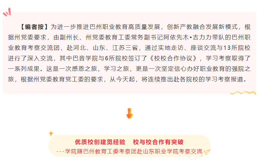上一条: “筑梦职教路 扬帆再起航”巴音学院深化校校合作之路系列报道(六