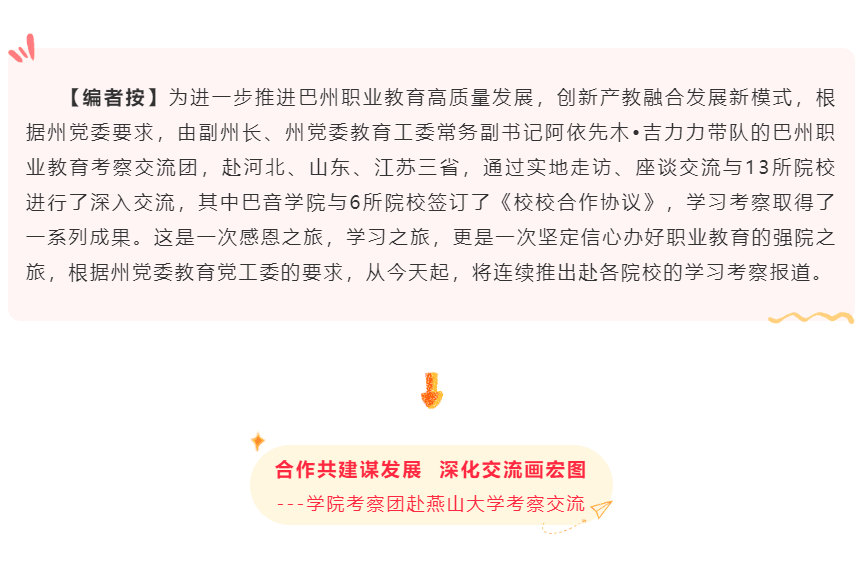 上一条: “筑梦职教路 扬帆再起航”巴音学院深化校校合作之路系列报道(五)