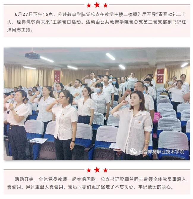 上一条: 公共教育学院党总支召开2022年第二季度党员大会暨党风廉政建设专题会议
