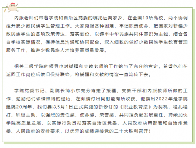 上一条: 传承红色基因 学习新职教法 推动兵地职业教育高质量发展---学院领导赴铁门关职业技术学院开展主题党日活动