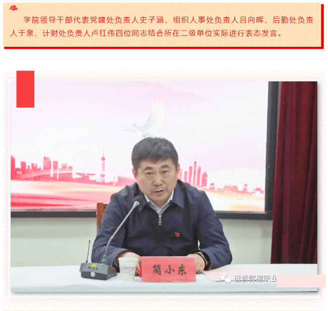 上一条: 勇于自我革新 善于自我完善 争做新时代的见证者、开创者、建设者---学院党委书记、副院长简小东为学生上“开学第一课”