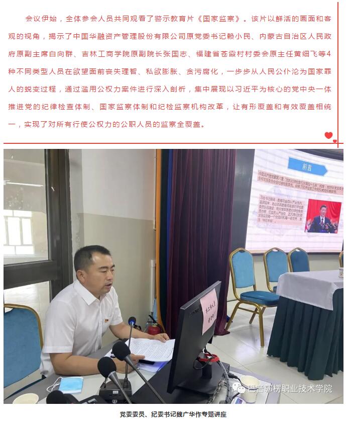 上一条: 【党旗映天山】学院召开第二十二个党风廉政教育月动员大会