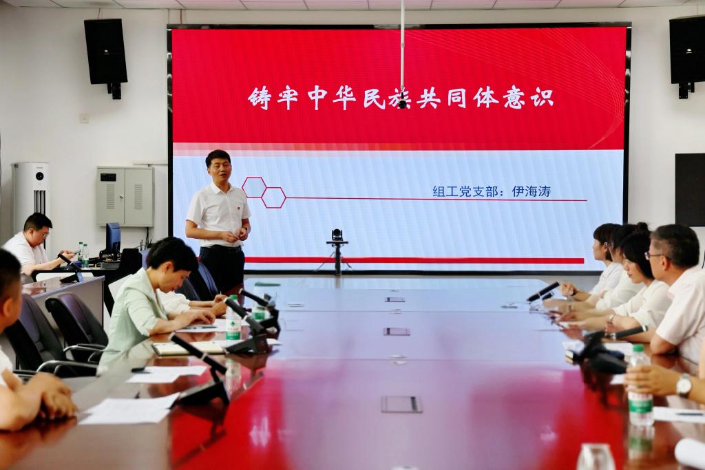 活动在国歌声中拉开序幕,全体党员重温入党誓词,并通过观看视频、党员领学等形式开展了党的创新理论学习,重点学习了《习近平:在全国民族团结进步表彰大会上的讲话》《习近平在中央民族工作会议上强调 以铸牢中华民族共同体意识为主线 推动新时代党的民族工作高质量发展》。学院党委委员、副院长、组工党支部副书记伊海涛以《铸牢中华民族共同体意识》为题做专题党课,结合历史与现实,从理论层面深入剖析了铸牢中华民族共同体意识的重大意义、核心内核和实践路径,并结合职业教育实际,分享了如何在教育教学中落实铸牢中华民族共同体意识的具体举措。