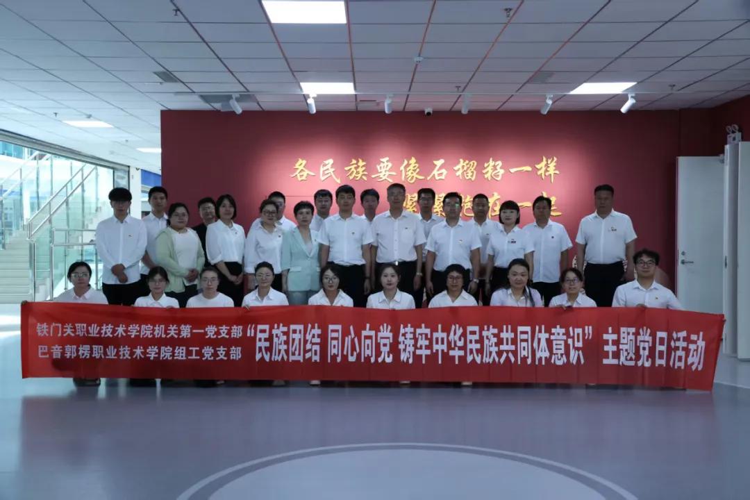 5月23日,sunbet申搏官方网站组工党支部与铁门关职业技术学院机关第一党支部、第二党支部在铁门关职业技术学院联合开展了“民族团结 同心向党 铸牢中华民族共同体意识”党旗映天山主题党日活动。