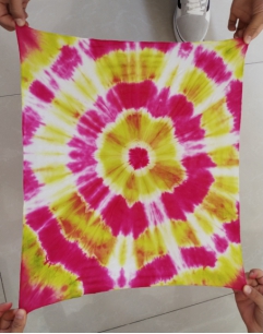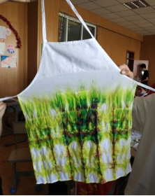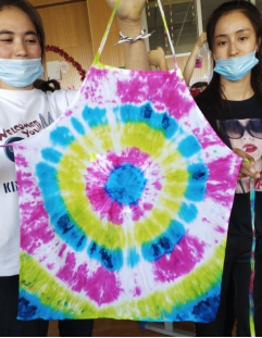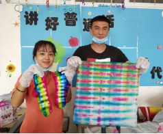学生用方巾、袜子、白T恤、围裙扎染出各种美丽图案,当他们打开自己扎染的作品,一片惊叫声和感叹声,为自己的作品叫好!因为扎染的作品具有偶然性,永远没有重复的作品,每一个学生的作品都是独一无二的,独具魅力。学生们通过这次教学,感受到传统艺术的魅力,纷纷表示要把自己所学带到以后的幼儿园教学中,教给自己的学生,让祖国的传统艺术传承下去!