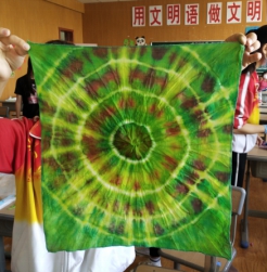张传华老师用了两节课时间完成本课程的教学,首先介绍扎染的历史,讲解扎染的艺术特色,然后展示扎染的制作技法,并现场演示扎染制作技法和扎染过程,让学生能亲眼目睹扎染艺术的魅力,感叹它的神奇!激发了学生的学习兴趣,纷纷跃跃欲试,亲历自己的作品制作,感染传统艺术魅力。