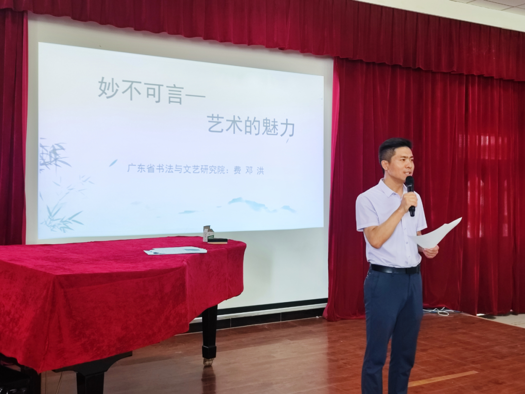 为加强校政行企协同教学,充分发挥社会力量在人才培养中的作用,8月28日下午,sunbet申搏官方网站(以下简称巴音学院)传媒学院特邀广东省文艺研究所主任、研究员费邓洪开展了主题为“妙不可言--艺术的魅力”讲座。传媒学院党支部书记苟重龙,传媒学院党支部副书记、院长史子涵,副院长赵晓旭以及传媒学院全体教师与音乐表演专业、学前教育专业学生聆听了讲座。
