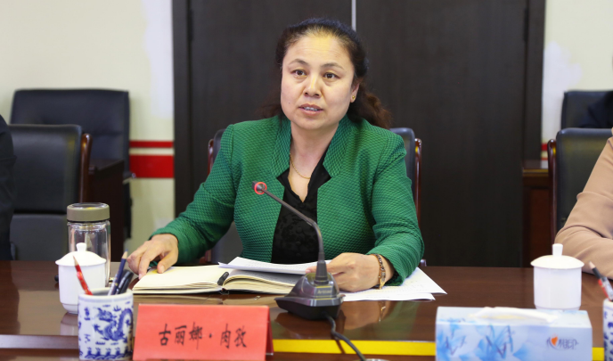 巴音学院党委副书记、院长古丽娜·肉孜介绍单位基本情况并交流发言