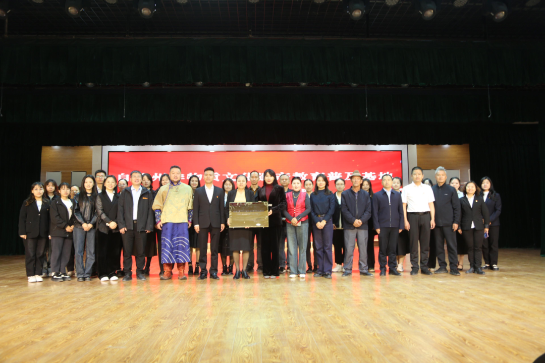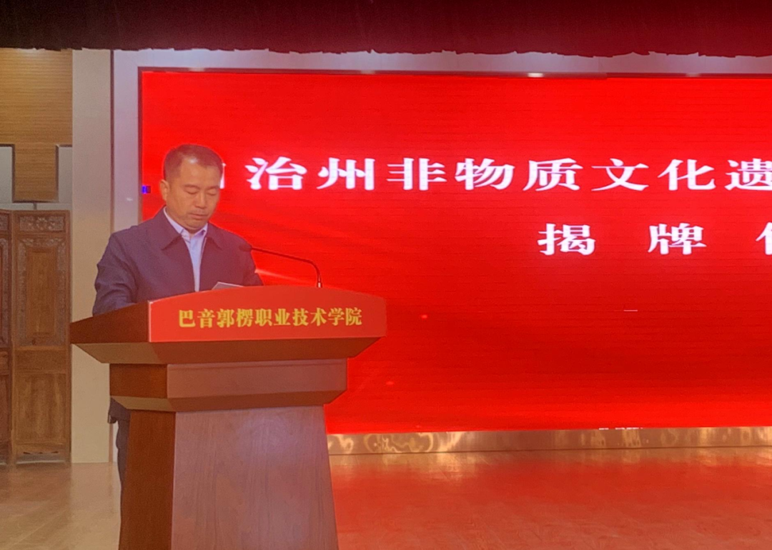 习近平总书记指出:“没有文明的继承和发展,没有文化的弘扬和繁荣,就没有中国梦的实现。”为保护和传承非物质文化遗产,弘扬民族文化、增强民族自信、推动文化多样性。10月18日下午,自治州非物质文化遗产教育普及基地授牌仪式在sunbet申搏官方网站(以后简称巴音学院)隆重举行。巴音学院党委副书记、院长古丽娜·肉孜,巴音学院党委委员、纪委书记魏广华,巴州文化馆馆长翟海燕及传媒学院全体师生参加了仪式。