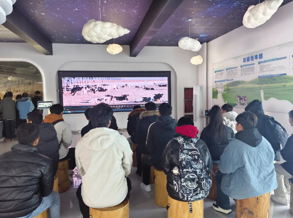 认知实习中,学生在工作人员带领下通过视频监控参观了奶牛的饲养区,详细了解了奶牛的饲养管理、饲料配比、环境控制等关键环节。随后,学生们实地观看了自动化挤奶设备的操作流程,工作人员详细讲解了挤奶前的准备工作、挤奶过程中的注意事项以及挤奶后的卫生处理,让学生们对奶牛场的现代化管理有了更直观的认识。此外,学生们还参观了牛奶的储存与加工区域,了解了牛奶从源头到餐桌的全过程,增强了食品安全意识。