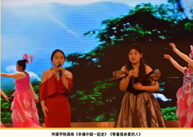 传媒学院以经典主旋律歌曲《幸福中国一起走》为基础,融合歌伴舞艺术形式,通过优美的旋律与动人的舞姿,表达对祖国的热爱与祝福。