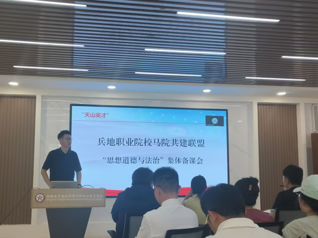 兵团兴新职业技术学院、昌吉职业技术学院、克孜勒苏职业技术学院、新疆应用职业技术学院、铁门关职业技术学院、双河职业技术学院、二师华山高级中学等十所兵地职业院校的马克思主义学院负责人、教学骨干及一线思政课教师参加备课会。会中围绕“中国精神”“理想信念”“改革创新”“铸牢中华民族共同体意识”“大中小学思政课一体化建设”等核心主题,开展深度教学研讨与经验交流,携手构建兵地融合、协同共进的思政育人新格局。