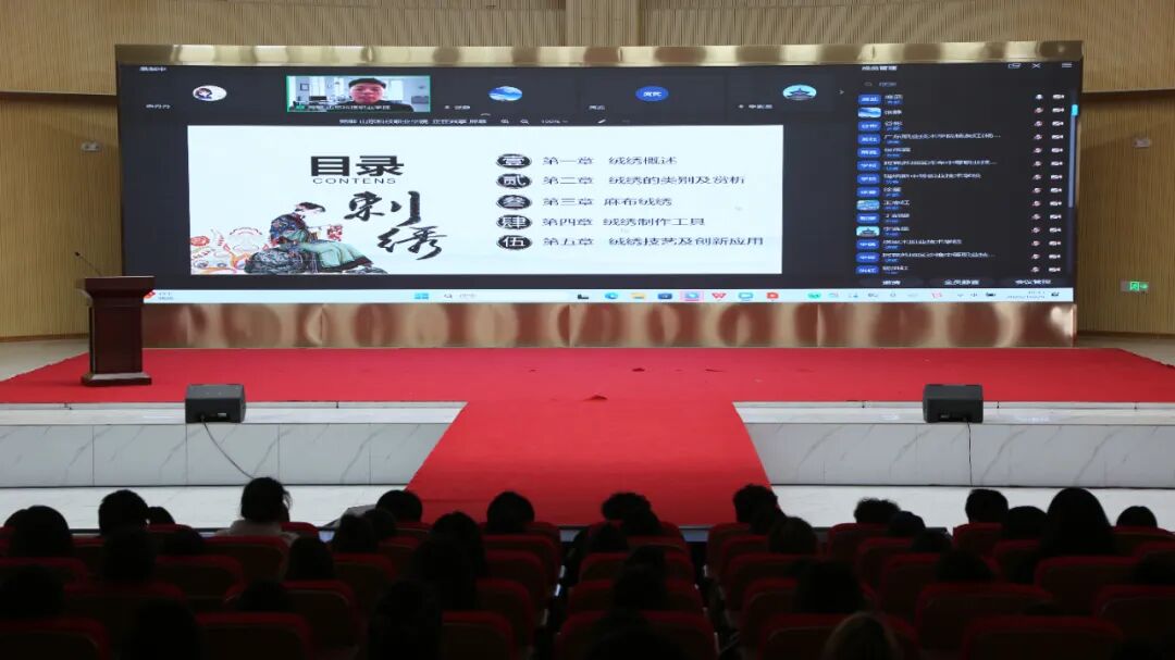 为传承中华优秀传统文化,提升师生对非遗技艺的认知与实践能力,10月29日,sunbet申搏官方网站纺织服装学院组织师生开展鲁绣(麻布绒绣)非遗专题培训。本次培训特邀山东省黄河流域传统服饰文化协同创新中心平台负责人、全国职业院校非遗教育名师名匠、工艺美术大师、麻布绒绣市级非遗传承人苑敏教授担任主讲嘉宾。纺织服装学院党支部副书记、院长丁盛,纺织服装学院副院长王庆、纺织服装学院师生及20家成员单位1000余人参加培训。培训由王庆主持。