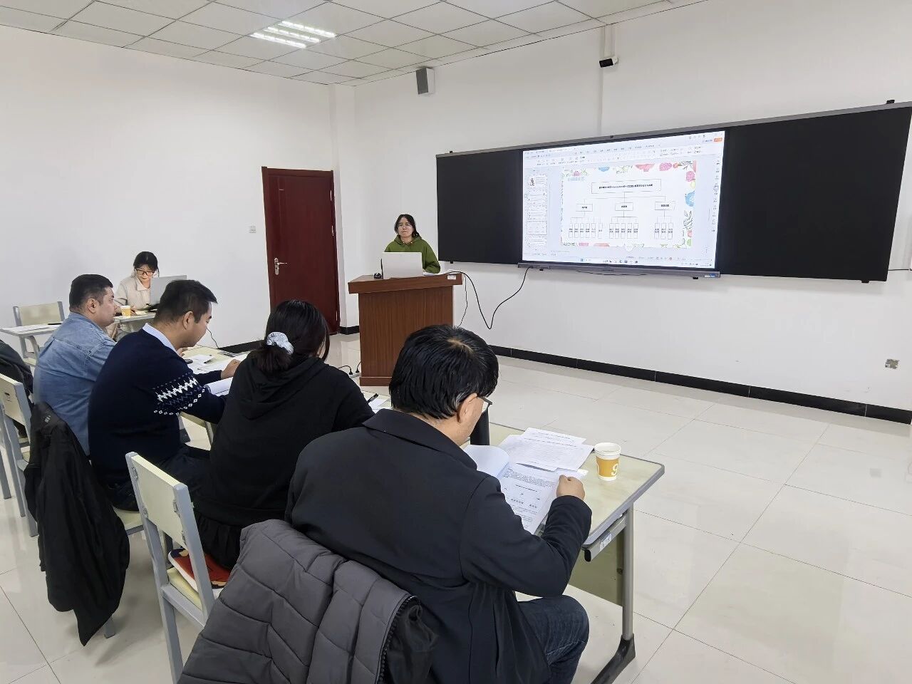 6个答辩小组,每组配备3名评委与2名秘书,分场次负责答辩组织工作。各小组职责明确,从开题报告审核、PPT展示到现场提问、评分记录,均严格遵循既定流程稳步推进。答辩中,学生围绕选题背景、研究意义、技术路线及预期成果作清晰阐述;评委们聚焦研究设计关键环节精准提问,提出方案优化建议,切实发挥指导把关作用,实现以评促学、以评促改。大家认真听取评审意见,及时记录修改要点,展现出严谨的专业素养和积极地学习态度。