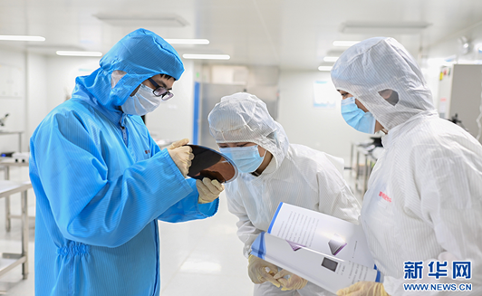 图为学生们在观察晶圆。新华网发(孙凯芳 摄)