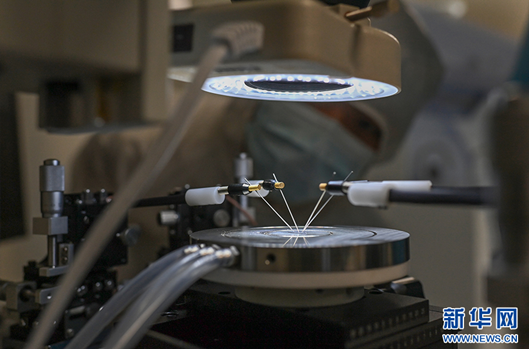 学生正在进行芯片引线键合操作。新华网发(孙凯芳 摄)