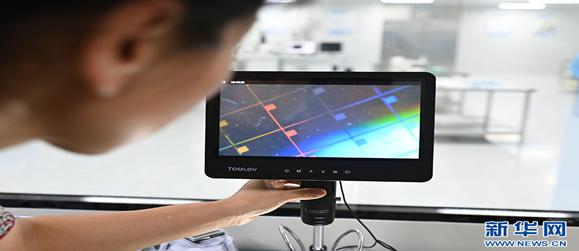 在硅光子人才培养与技术创新中心,学生使用仪器进行芯片的表面观察。新华网发(孙凯芳 摄)