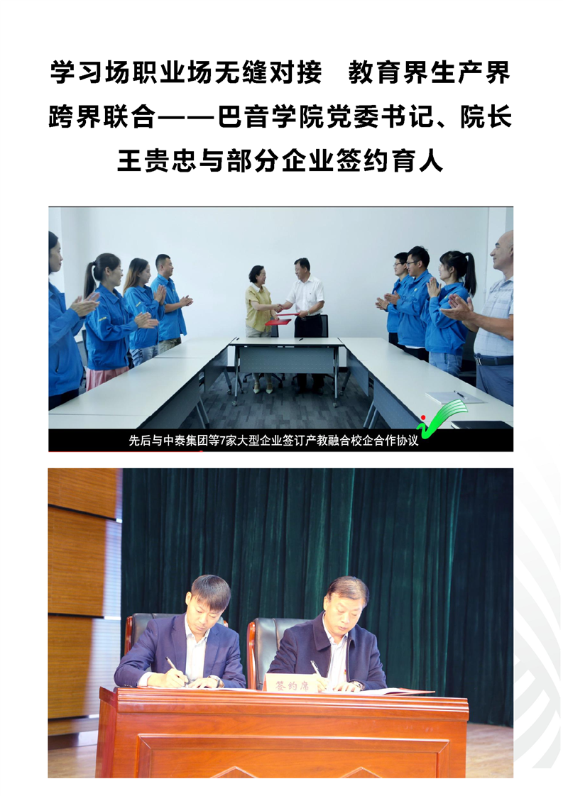 学习场职业场无缝对接 教育界生产界跨界联合——巴音学院党委书记、院长王贵忠与部分企业签约育人