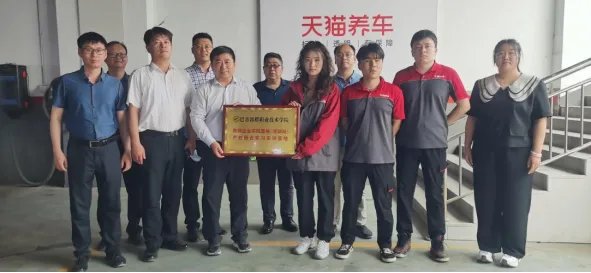巴州叁陆伍商贸有限公司人力资源负责人介绍了天猫养车的发展和实习学生的工作生活情况;双方举行了产教融合实习实训基地、教师企业实践基地(流动站)的授牌仪式