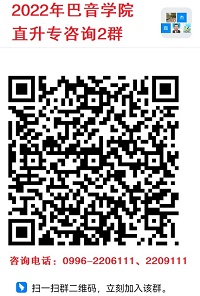 请以下考生在4月10日24点前加入我院2022年直升专钉钉咨询群,等待考试(钉钉线上)分组通知;因钉钉群容量有限,请序号为1-900号的考生加入2022年巴音学院直升专咨询1群、900号以后的考生请加入2022年巴音学院直升专咨询2群。咨询电话:0996-5898396(专线)二维码如下: