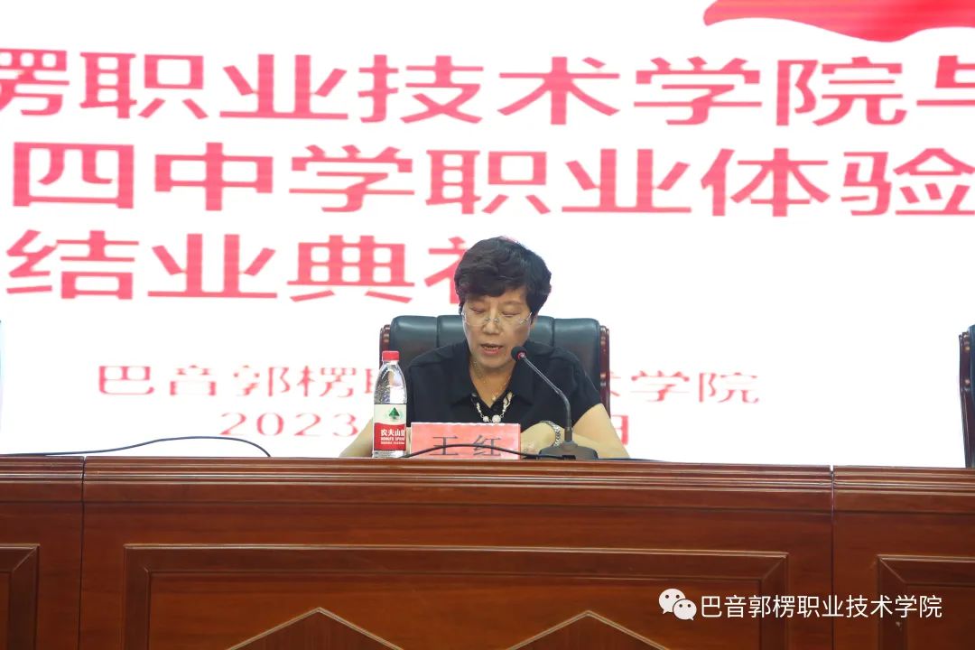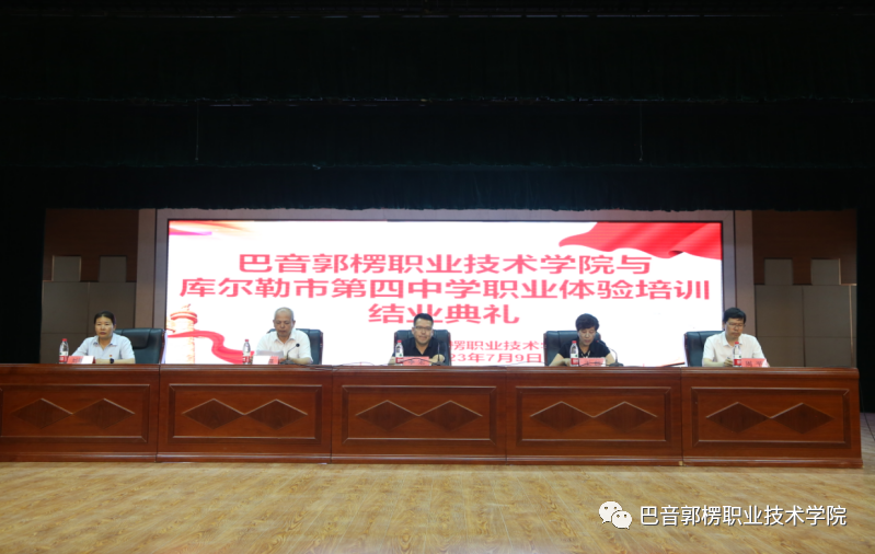 为全面贯彻习总书记重要指示精神,引导广大中小学校注重发挥技能人才培养优势。7月9日下午,sunbet申搏官方网站(以下简称巴音学院)与库尔勒市第四中学在巴音学院事务大厅三楼举行了职业体验培训结业典礼。学院党委委员、副院长李宏,库尔勒市第四中学校长左勇强,库尔勒市第四中学副校长周平,库尔勒市第四中学副校长刘赛华以及各二级学院培训科长、继续教育与培训学院全体教师、库尔勒市第四中学参训学生参加了结业典礼。巴音学院党委委员、副教授王红主持。