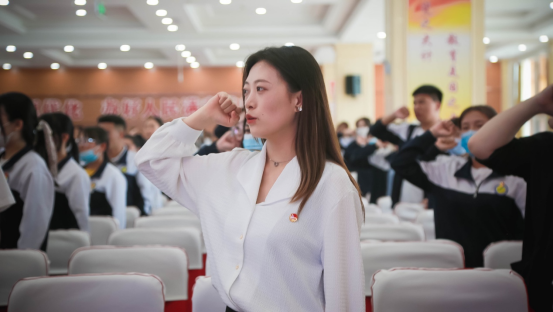 传媒学院2021级学前教育5班的王雅玲代表新团员发言,她郑重承诺:“我们将树立崇高的信念,奋发进取,严格要求自己,履行好一名团员的权利和义务。我们以后一定会以身作则,在同学们面前起到表率作用,也在今后班级工作、团队工作上努力做到最好。我们新团员一定会忠于自己的入团誓言,把铮铮誓言化做终身的信念,化作刻苦学习的毅力和恒心,化做创新实践的活动,努力学习,敏于求知,不断提高自己的素质,今天,争做德、智、体、美全面发展的学生,明天,成为祖国未来的栋梁!”