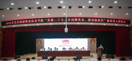 入团仪式在庄严肃穆的国歌中拉开序幕。学院党委副书记、院长古丽娜·肉孜宣读104名新团员名单,党委班子成员和老团员为新团员佩戴上了象征光荣与责任的团徽,在团委书记祝建章带领下举起右拳,用洪亮的声音,庄严宣誓。