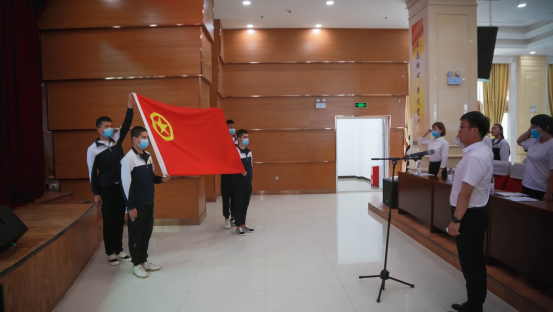 最后,全体起立奏唱团歌,本次入团仪式在激扬的团歌歌声中落下帷幕。