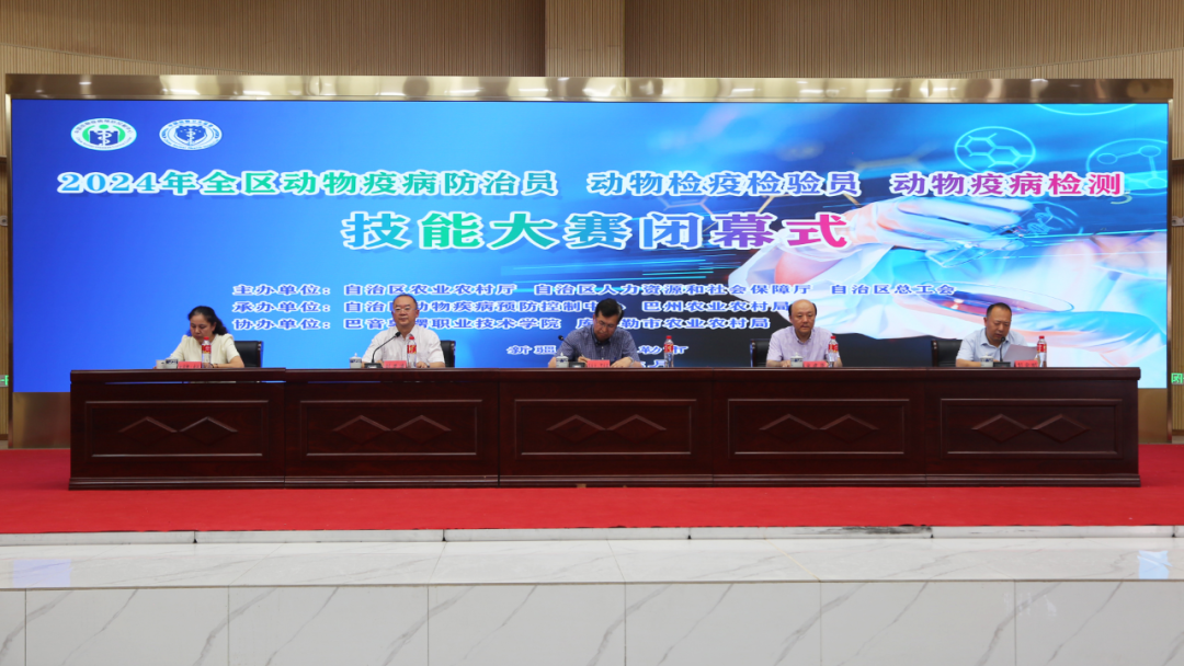 6月29日,2024年全区动物疫病防治员、动物检疫检验员、动物疫病检测员技能大赛在sunbet申搏官方网站(以下简称巴音学院)产教融合园圆满闭幕。