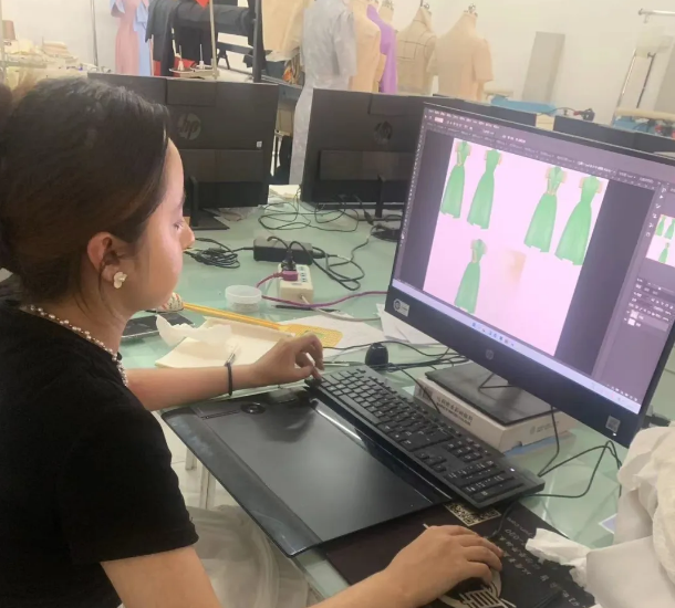 手工艺术设计赛项聚焦连衣裙着装效果图设计,学生结合时尚与流行元素,融入本土文化,兼顾个性化与市场需求,在面料与工艺运用上独具匠心,为服装设计增添层次与艺术感。