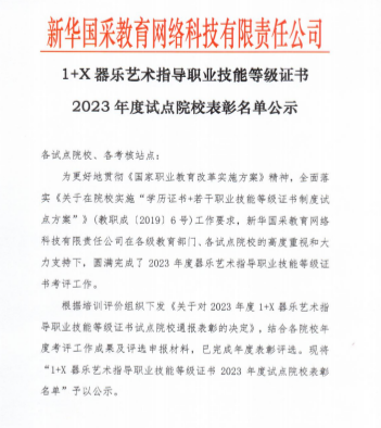 本证书试点建设二级学院为传媒学院,证书对应学校和校外培训机构器乐艺术指导教师等岗位,培养学生在器乐(钢琴)教学指导中对学生艺术指导能力,围绕学历证书和实际岗位需求,进行课证融通、岗课融通,对学生提出更加标准严格的要求,也为学生的可持续发展指明方向,有利于激发学生做器乐指导教师的潜力,最终推动校企合作,促进人力资源开发等方面的综合能力。