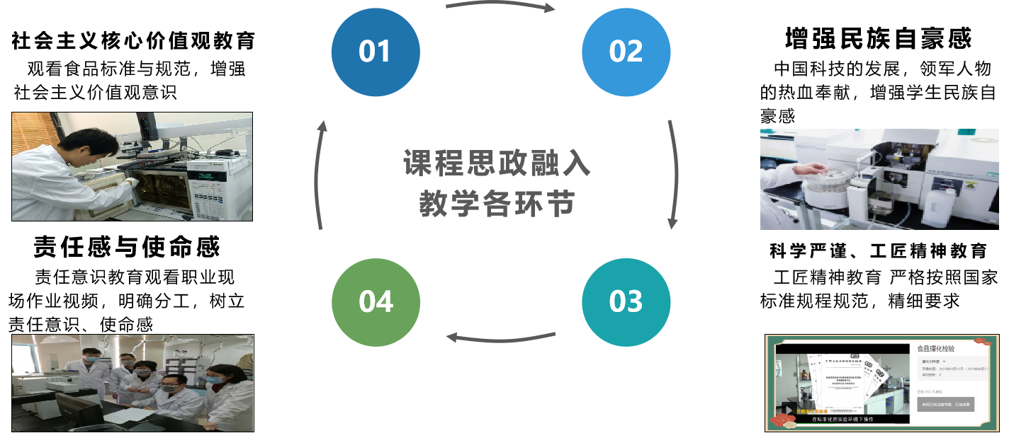本次课开始进入食品中有毒有害检验项目学习,接下来就是一系列的有毒有害成分测定项目,首先对铅、铝等物质的危害、来源以及限量进行通讲,使教学过程更加系统。通过提问和组织学生探究:有害元素的来源有哪些,有助于学生了解有毒有害物质的种类、对人体的危害。 对接职业院校技能大赛、粮农1+X食品安全评价项目--茶叶中重金属含量的测定,引入操作规范。 |
