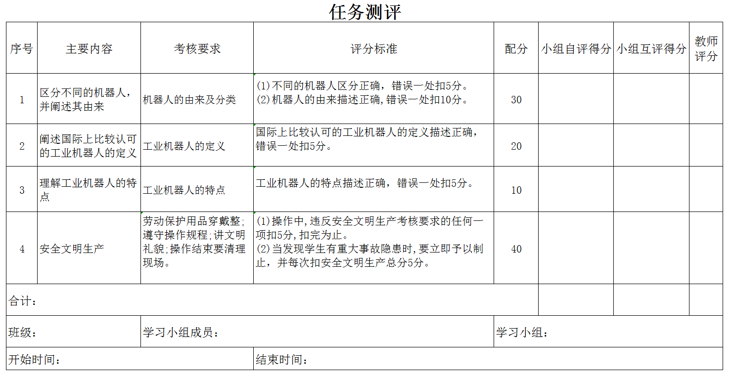 (1)各小组采用讨论学习法学习初识工业机器人作业指导书