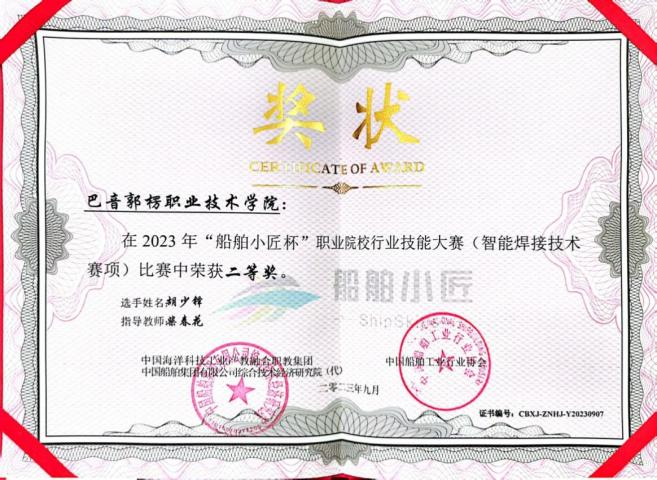 职业技能等级证书:电工中级、电工高级、焊工中级、钳工初级、车工中级。